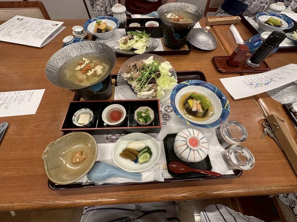 旅館大沼に宿泊して、朝食と夕食を味わいました。夕食メニューは、温泉水でつくられた自家製薬膳鍋や、地元の夏野菜、地元のお米などが、とっても美味しくて、親切な仲居さんの気遣いに温まりながら、楽しく食事をいただきました。