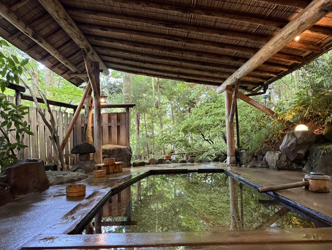 温泉成分も十分魅力的ですが、母里の湯の景観に魅了されました。湯船から見える森の中の自然や虫や鳥のさえずりや温泉が流れている音しか聞こえない静寂な空間、湯船から反射して見える木々の色味。それらを感じ、心が清らかになりました。まさに心のデトックスです。また、これらは季節によって移り替わるのです。それぞれの季節の母里の湯を体験したいと思うようになりました。