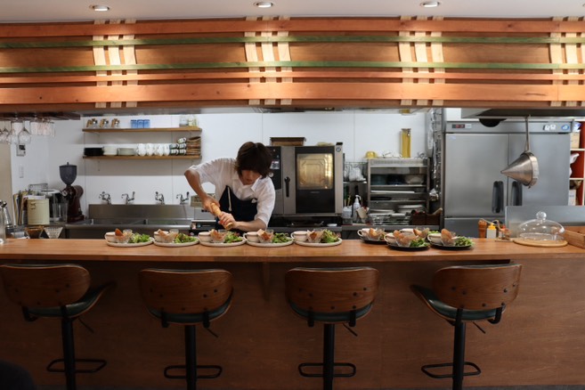 店内はオープンキッチンになっており、調理しているところがよく見えるため、料理が出てくるまでの時間も楽しむことができます。