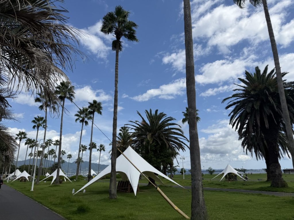 SHONIN PARKは今年の7月24日オープン。エリア一帯には、別府海浜砂湯「Sand SPA」はもちろん、朝7時から夜10時まで開いているレストラン、バスケットコートや、バーベキューもできるテント、コテージに泊まる宿泊施設「AMANE RESORT GAHAMA」もあります。