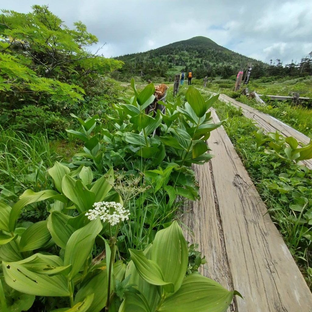 下りの登山道は木道も整備されていて、ちょうど花の季節で楽しめます。(といいつつ木道はいろんな意味で走れないですがね)去年は熊が出ていたらしいのですが、今年はそんなこともなく、ひと安心。