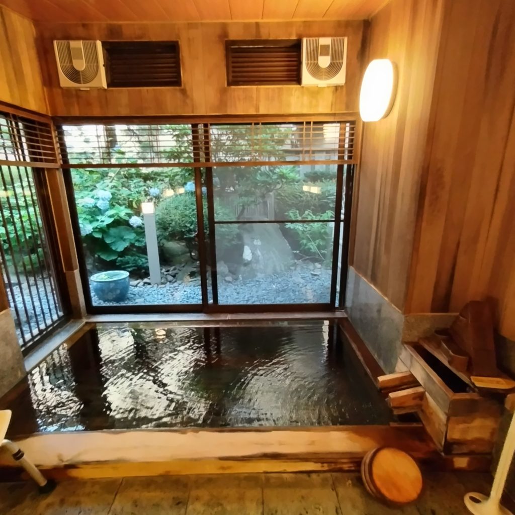 しかし、下界は暑い・・・35℃くらいあったのでは?もうお湯の温度とさほど変わらないのでは・・・とりあえず、冷たいお茶をいただいて汗が引いてきたら、再び発汗のためにお風呂へ。