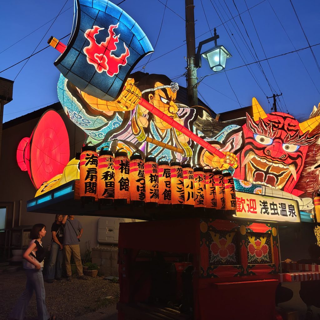 ラッセラーラッセラーのかけ声とともに、思っていたよりたくさんのねぶたが宿の前を通過していきます。酔っ払っているせいもあって、お囃子に合わせて見よう見まねで一緒に跳ねてみたり。いつかは本場のねぶたに出てみたい、と密かに企んでいるのでそんな日が来ることに思いをはせながら。