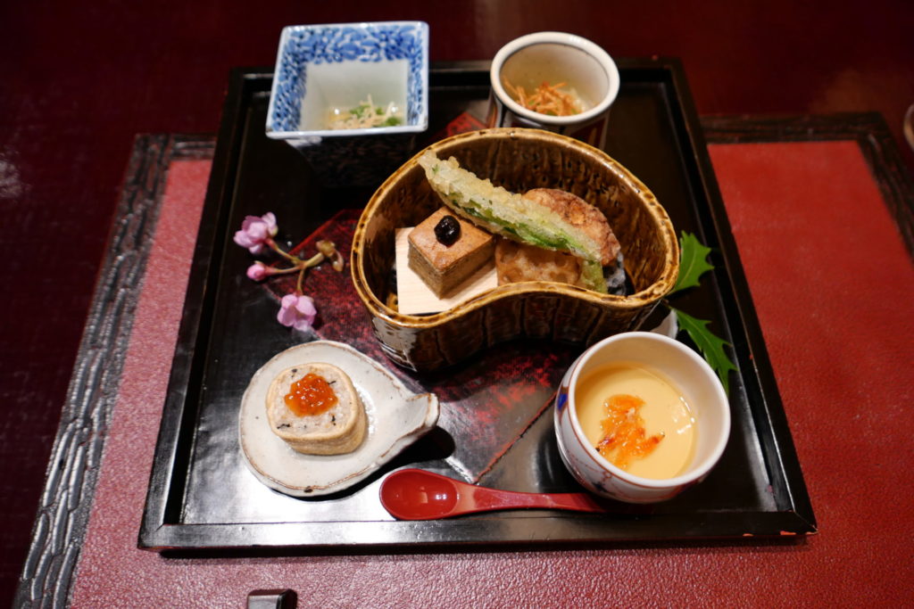 組肴は、行者ニンニクの天ぷら、河豚竜田揚げ、うるいとセロリの梅香浸しなど、春を感じるお料理は白ワインと一緒に楽しみました。