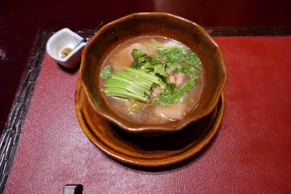 和鴨鍋は出汁がものすごく美味しかった。甘い焼き葱や、ほっこりおいしい里芋唐揚げが入っていて食べ応えがあり、芹がいい風味です。