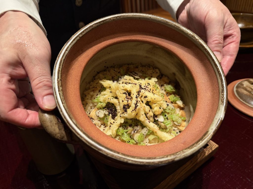 しめは、白魚と若ごぼうの釜炊きごはん。具沢山の赤だしと一緒に最後までおいしくいただきました。