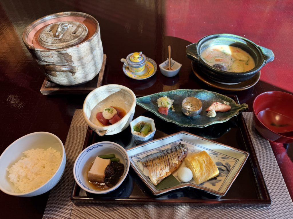 今回はゆっくりしたくて、赤沢迎賓館の食事処で海鮮中心の会席料理コースの夕食付きで泊まりました。